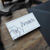- kartička pozvání ke stolu: 90x50mm, světle šedý recyklovaný papír, 250g, černobílý tisk