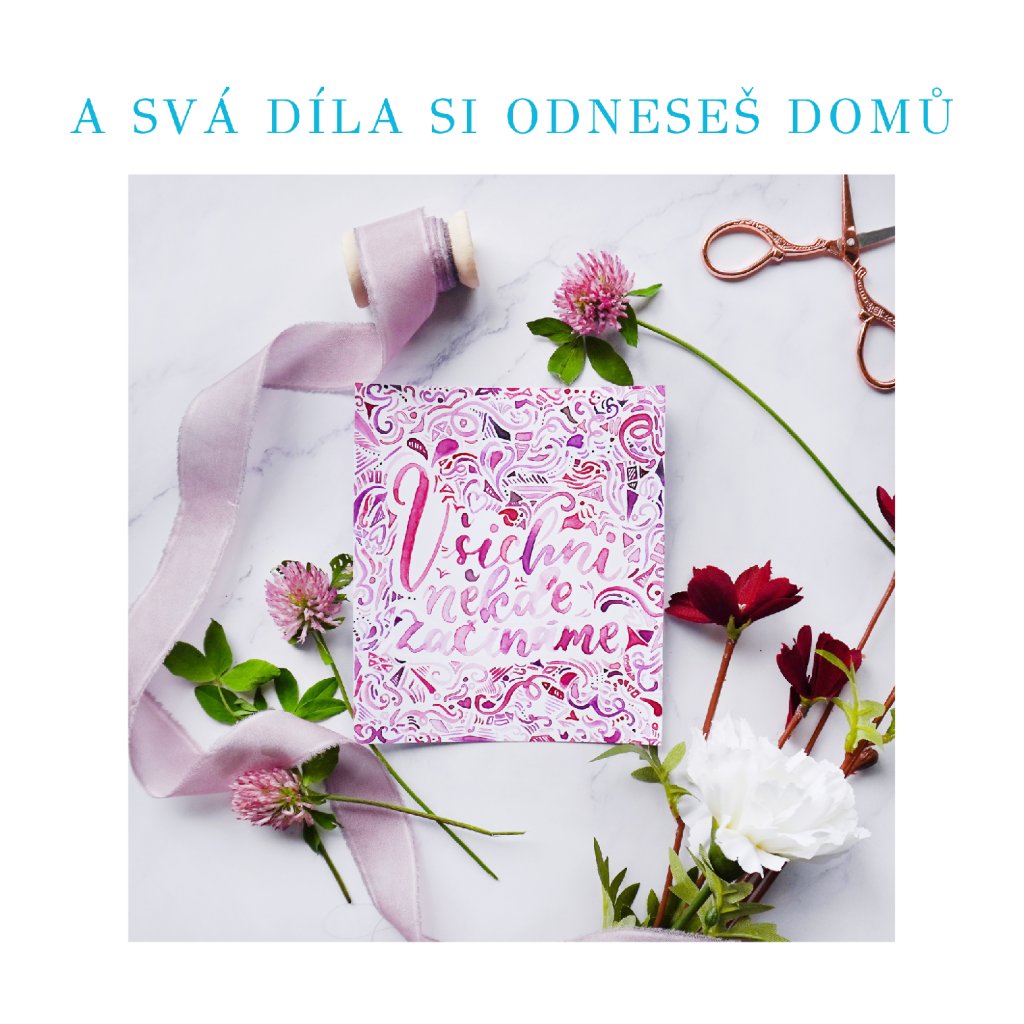Délka kurzu je 4 hodiny, tedy dostatek času i na to, aby zaschla naše akvarelová, tedy vodou aktivovaná, díla. Sejdeme se v kreativním prostředí písmodílny a zasedneme kolem obrovského společného stolu, abychom mohli svá díla společně sdílet a učit se i jeden od druhého.