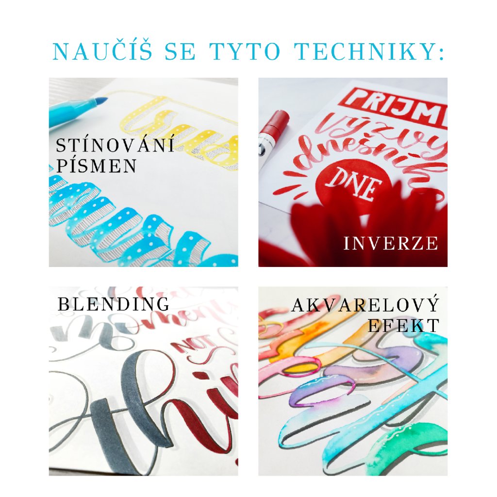 Proč vybrat dražší balíček? Pokud chcete na kurzu již pracovat s brushpeny, které si po skončení ihned odnesete domů a dál s nimi okamžitě trénujete naučené, je vhodné zvolit jeden z dražších balíčků. Navíc fixy nemusíte shánět po všech čertech na internetu, platit poštovné a čekat, než dorazí.