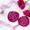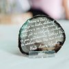 Luxusní, kaligrafií ručně popsané achátové plátky sloužící jako poděkování rodičům či svědkům. Psáno na achátové plátky původem z Brazílie. Určené pro náročné nevěsty, které by rády svůj svatební den pozdvihly na vyšší úroveň a ozdobily stoly těmito nádhernými drahokamy. Každý plátek je unikát, nenajdete dva stejné, liší se ve velikosti, tvaru, kresbě uvnitř plátku i v barvách a jsou lehce průhledné.