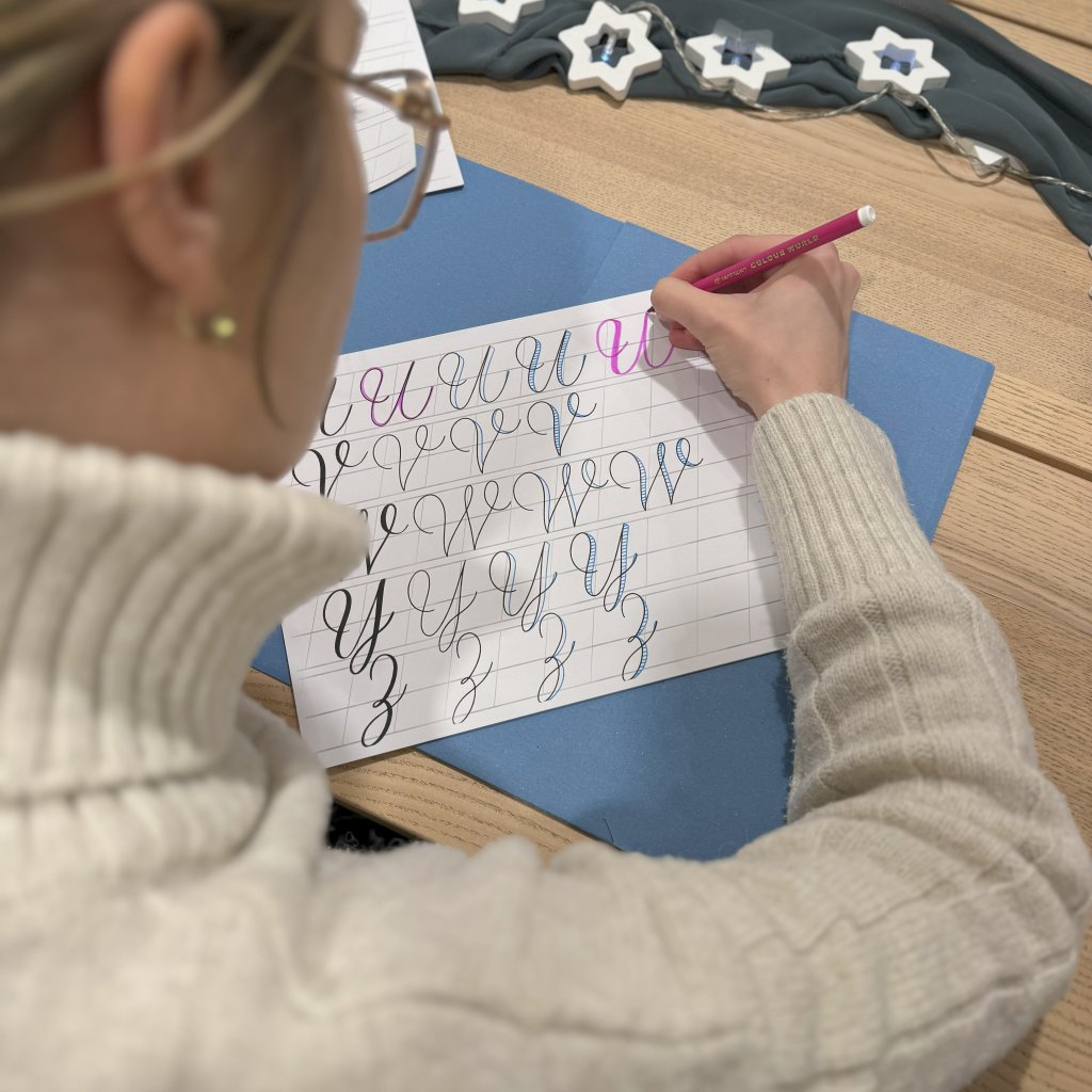 Tento workshop je ideální pro mírně a středně pokročilé – pro všechny, kdo už drželi brushpen nebo pero v ruce a chtějí si připravit vlastní ozdoby a jmenovky.